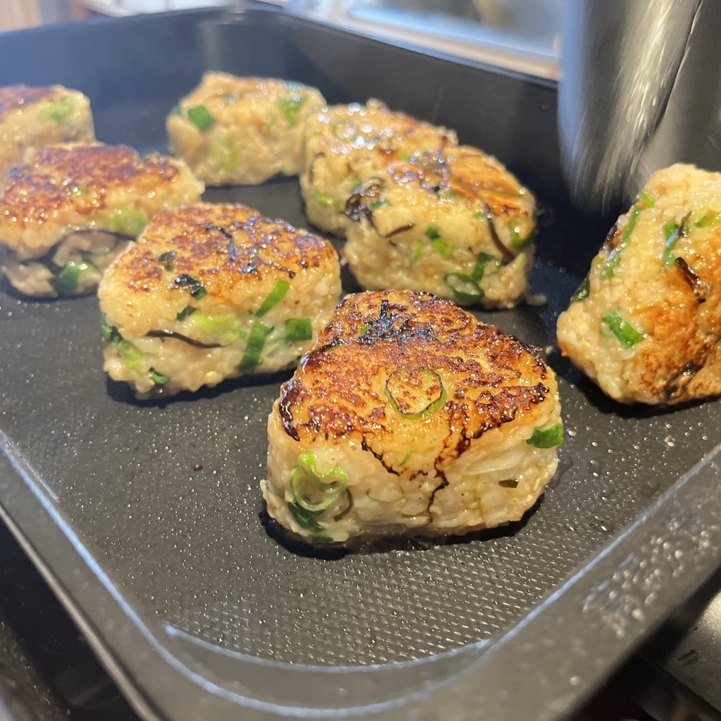 ③ 熱したフライパン(またはホットプレート)にサラダ油を敷き、②の両面を焼き色がつくまで焼く。