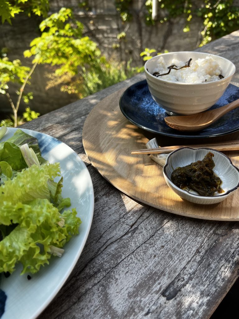 • 玄米粥の塩昆布あえ